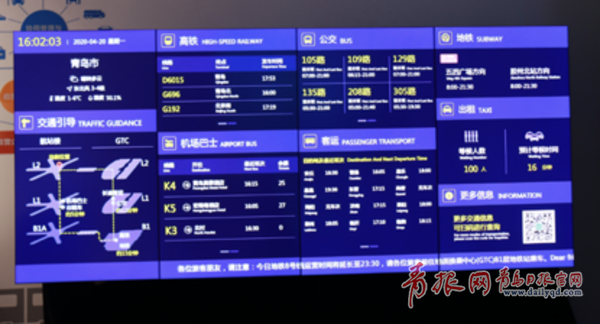 “在旅客到达口、前往换乘中心连廊两侧等必经之处,我们安装了智能诱导屏,向旅客全面、实时展示当前机场各交通方式运行状态,如高铁发车时间、公交线路及运营时间、长途客运线路、车次及余票信息、出租车实时等候人数及候车时间等,乘客可通过屏幕显示的交通方式及换乘诱导信息,简单快速地了解到选择哪种交通方式最为方便、快捷。”海信枢纽解决方案工程师方永祥介绍说。据悉,该屏在业内首次将出租车候车时间进行精准动态预测,同时首次实现将机场所有交通方式进行整合及动态发布。更便利的是,旅客还可通过手机APP、微信支付宝小程序等查询室内外路线导航、最短路径规划、联运换乘推荐等信息,帮助旅客实现全程无断点式换乘,提升旅客出行效率及换乘体验。“随着5G、人工智能、区块链技术逐渐成熟应用,未来机场业务流程自动协同将不是梦想,海信也将持续深耕,争取早日实现地面交通与航班的无缝衔接,让旅客享受到’一票通’、‘一站通’、‘一点通’的便利。”来源:青岛日报